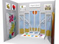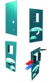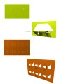 Decorative screens/ room dividers, made by inserting coloured laser cut aluminium sheets into a frame which, creates the pattern. The frame is a single folded sheet of aluminium.