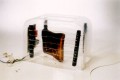 Designed within a recycling project, made from a coloured kitchen waste pipe this torch, with its double reflector inside, converts into a lantern, uses the same bulb for both functions.