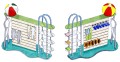 This shop display unit was designed for products associated with swimming. The handrails above the simulated diving board are standard teaching woggles.